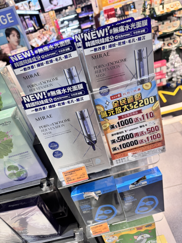 そして、台湾のシートマスク売り場は、日本とは“熱量”が違います。これがありがたい!パッケージの華やかさ、種類の多さ、成分はしっかりしてるから思わずジャケ買いしても大丈夫。
