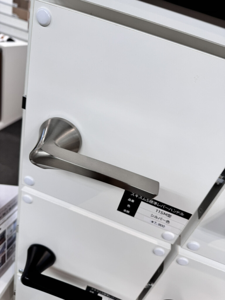 白系の建具に黒いハンドルをつけると、