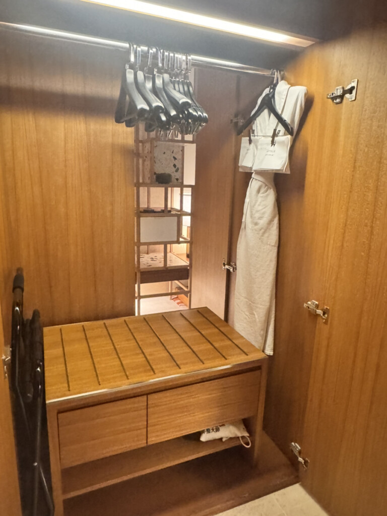 入口も広くてスーツケースが置けるけれど、部屋の真ん中に出しっぱなしにしない選択肢があるのが嬉しい。